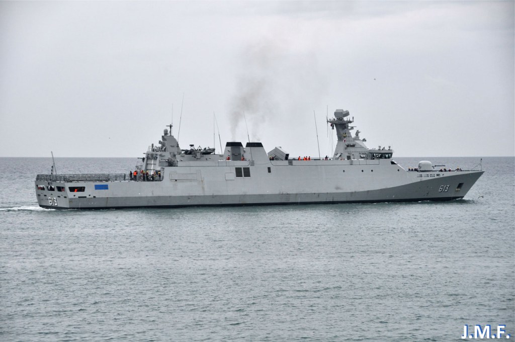 Armamento: Artillería, 1 cañón OTO Melara de 76 mm. y dos cañones Denel GI-2 de 20 mm.; misiles antiaéreos, 1 sistema VLS de 24 celdas para misiles MBDA MICA y 4 lanzadores de misiles antibuque Exocet MM-40 Block II; 2 lanzatorpedos triples B515 para torpedos antisubmarinos MU-90.