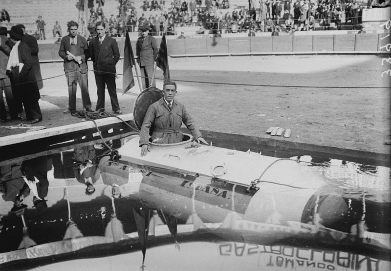A las once y media de la mañana del día 8 de enero de 1933 el tanque sumergible con su inventor se sumergieron en el pequeño estanque y como era de esperar la prueba fue todo un éxito.