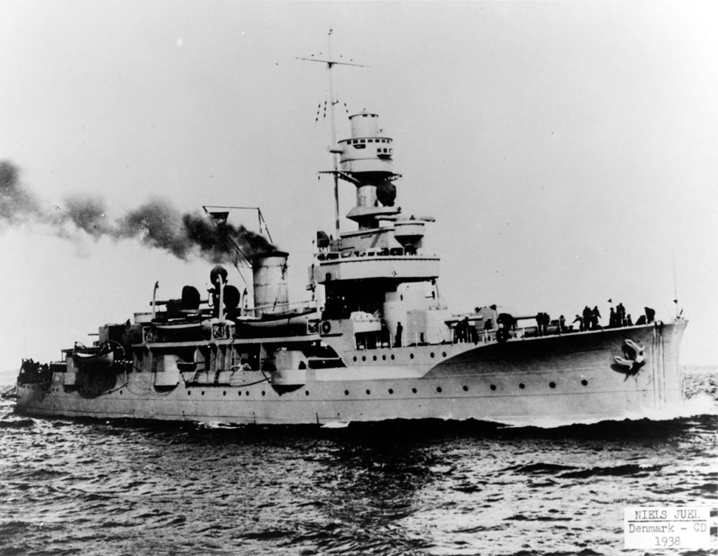 No obstante cuando el gobierno danés decidió continuar con su construcción, se encontraron con el problema de la adquisición de su artillería. El plan original era el de dotar al barco con cañones de manufactura alemana pero el Tratado de Versalles impedía que dicho país fabricara y entregara el calibre deseado para la marina danesa, por tanto tuvieron que buscar un sustituto. Tras valorar diferentes propuestas se decantaron por el fabricante sueco Bofors, adquiriendo diez cañones PK L/45 de 150 mm y dos cañones antiaéreos ABK L/30 de 57 mm. Desde Alemania si se pudo recibir su coraza, construida por la firma Krupp con acero de Bethlehem Steel.