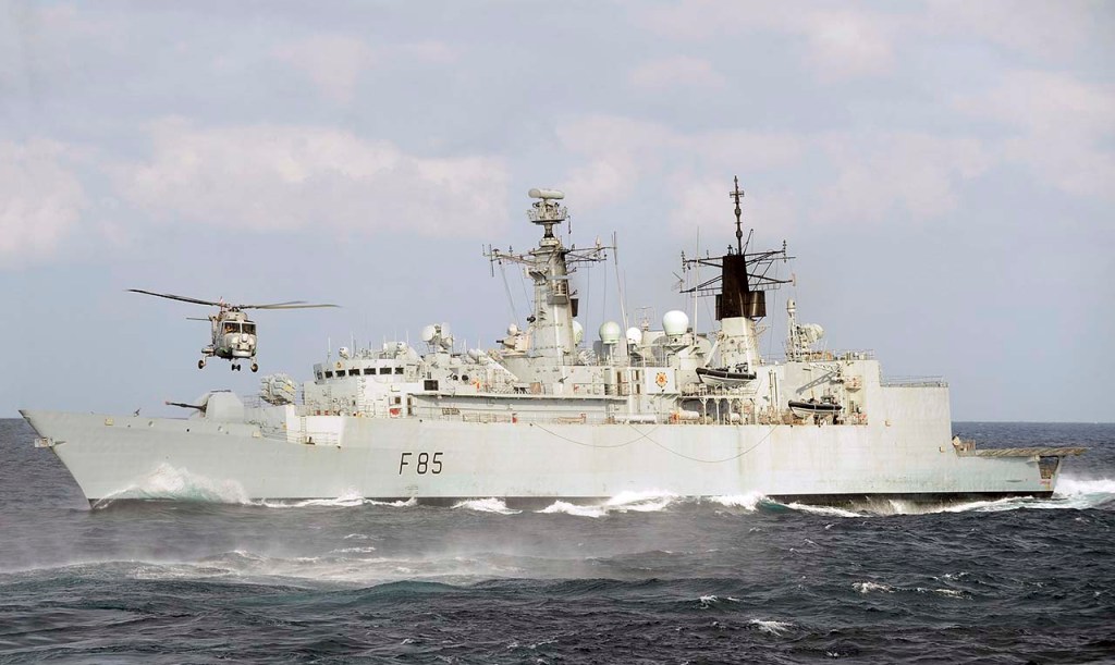 Fragata HMS Cumberland con su imprescindible helicóptero Lynx (MoD)