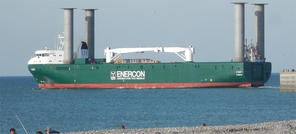 En el año 2008 los astilleros alemanes de Lindenau GmbH en Kiel construyeron el «E-Ship 1», un buque Ro-Ro de 10.500 toneladas y 130 metros de eslora al que se le instalaron 4 rotores Flettner de la compañía ENERCON.