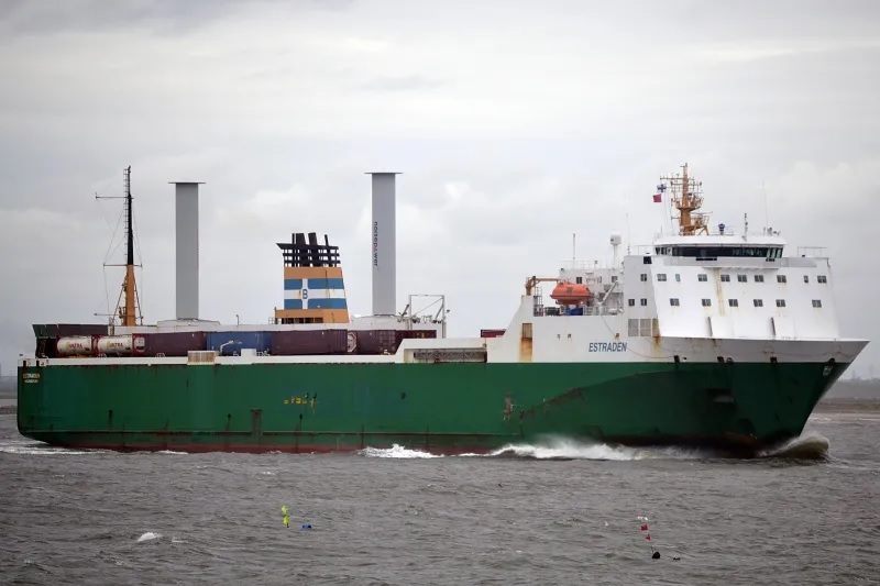 Otro buque al que se le instalaron rotores fue el Ro-Ro «Estraden» de 18.205 toneladas brutas y 162,7 metros de eslora que actualmente navega para la compañía BORE LTD. con rotores de la firma Norsepower.