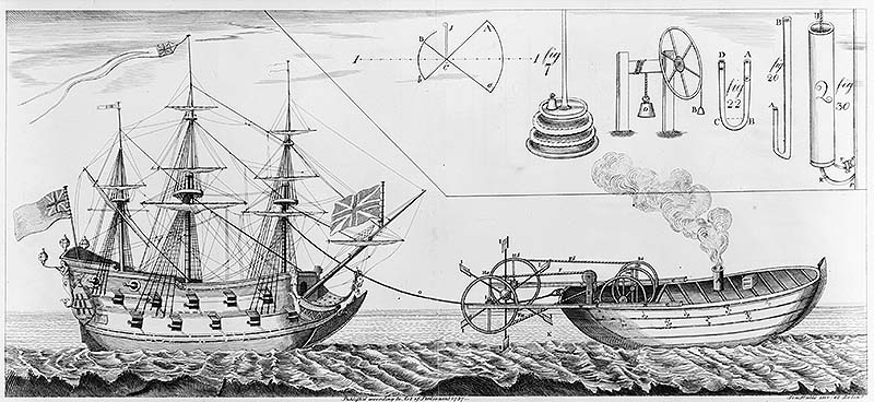 La revolución de la máquina de vapor también alcanzó al transporte marítimo y rápidamente inventores e ingenieros se pusieron manos a la obra para adaptar el nuevo invento primero a barcos de madera y después a los más sofisticados de hierro. Uno de los primeros inventores fue el español Blasco de Garay que ya propuso una máquina de vapor para propulsar barcos en 1543 y que fue probada en aguas del puerto de Barcelona, pero no quedó ninguna prueba o plano de dicho ingenio que haya llegado a nuestros días.