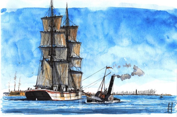 Otro elemento que quizás fuera más importante fue la aplicación de la máquina de vapor al transporte marítimo, permitiendo no solo que las travesías se acortaran de meses a semanas sino que también posibilitaba la construcción de buques más grandes y con mayor capacidad de carga, y por ello, se hizo necesario el dotarse de medios para ayudar en la maniobra a estos buques cada vez más grandes y pesados.