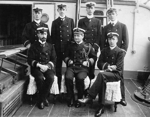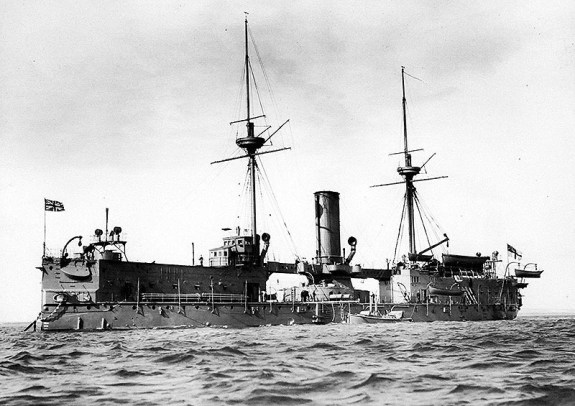 4. […] eran los acorazados HMS Alexandra en cuyo mástil enarbolaba la insignia del Duque de Edimburgo, HMS Colossus, HMS Temerarie y HMS Thunderer, el crucero HMS Dolphin, el cañonero HMS Scout y el aviso HMS […]