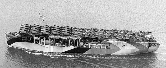 Como ya sucediera con otros buques cuyas historias se han narrado en este blog, el Seven Seas tiene un origen bien distinto al aparente de transatlántico, del mismo modo que el Corrientes argentino, el Seven Seas fue construido como un barco mercante y reconvertido a portaaviones pero este era algo especial, ya que fue el primer portaaviones de escolta de la US Navy.
