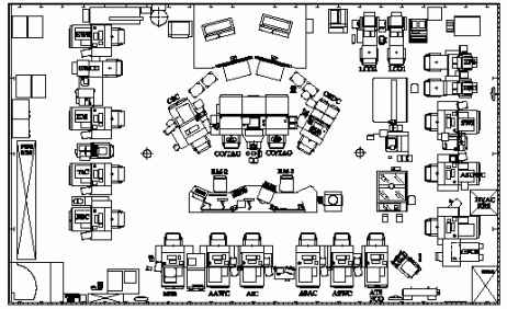 Los C.I.C. de estos buques disponen de consolas y asientos privilegiados desde donde los oficiales dominan toda la sala para procesar los datos y dar las ordenes, frente a ellos tienen unas grandes pantallas de más de 40 pulgadas a color y a su alrededor se encuentran el resto de operarios con los diversos subsistemas dedicados a cada arma, sensor y/o especialidad.
