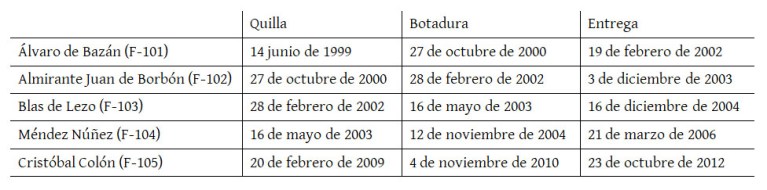 Los astilleros Navantia/Izar en su factoría de Ferrol construyeron cinco fragatas entre los años 2000 a 2012, todas ellas fueron bautizadas en honor a ilustres marinos como Álvaro de Bazán, Almirante Juan de Borbón, Blas de Lezo y Cristóbal Colón. Los cinco escoltas quedarían integrados en la 31ª Escuadrilla de Escoltas con base en Ferrol y fueron los sustitutos perfectos de las fragatas de la clase Baleares.