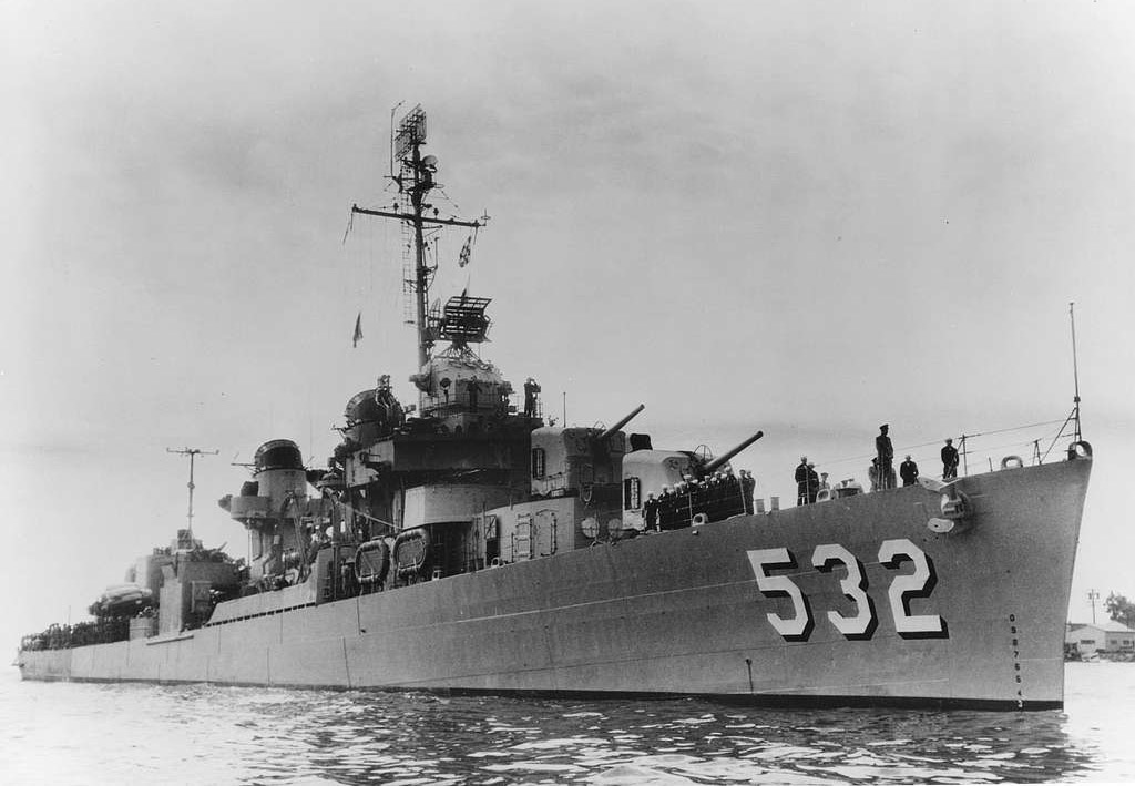 Pertenecía a la numerosa y exitosa clase Fletcher de destructores de los que se construyeron 175 unidades entre 1941 y 1945 y de ellos se perdieron 25 en combate. Nuestro protagonista fue construido en los astilleros norteamericanos de Bethlehem Steel en San Francisco, siendo botado el 5 de diciembre de 1942 y entregado el 6 de julio de 1943. Fue bautizado en honor a Lewis Heermann, un marino norteamericano de origen alemán que destacó en su papel en la Guerra de Trípoli en 1801.