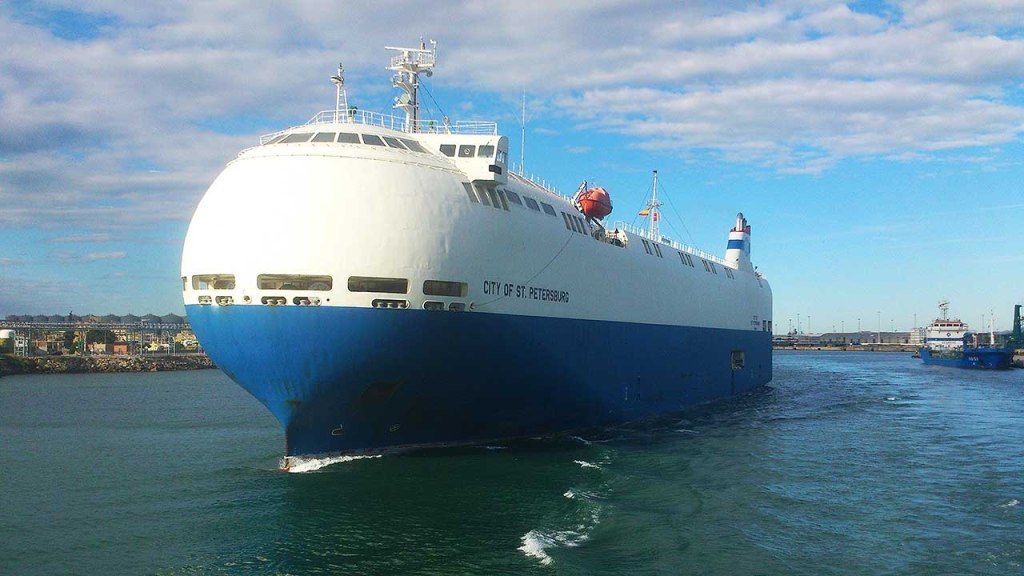 Sin embargo, en ocasiones hay escalas interesantes como la del «City of St. Petersburg» un buque de transporte de vehículos, o Ro-Ro, cuyo aspecto físico es algo distinto como sacado de una novela de ciencia ficción que tiene la finalidad de ahorrar combustible.