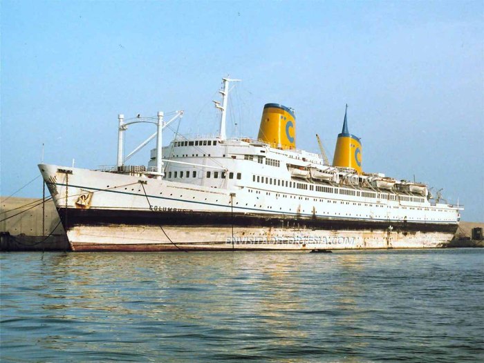 Va ser un dels vaixells de passatgers més grans del seu moment, el «Columbus C» originalment va ser construït sota el nom de «Kungsholm» per les drassanes holandeses De Schelde Shipyard, a Vlissingen, encarregat per la companyia Swedish American Line. Va ser avarat el 18 d’octubre de 1952, realitzant el seu primer viatge inaugural el 24 de novembre de 1953. Va passar per diferents propietaris i diferents operadors, així mateix va tenir altres noms, de 1965 a 1981 se’l va reanomenar a «Europa», i de 1981 a 1985 al definitiu «Columbus C». Desplaçava 21.164 tones, i les dimensions eren de 182,89 metres d’eslora per 23,50 metres de màniga i 13,85 metres de calat. Originalment tenia una capacitat per a 802 passatgers, que es va veure augmentada amb posterioritat a 843.