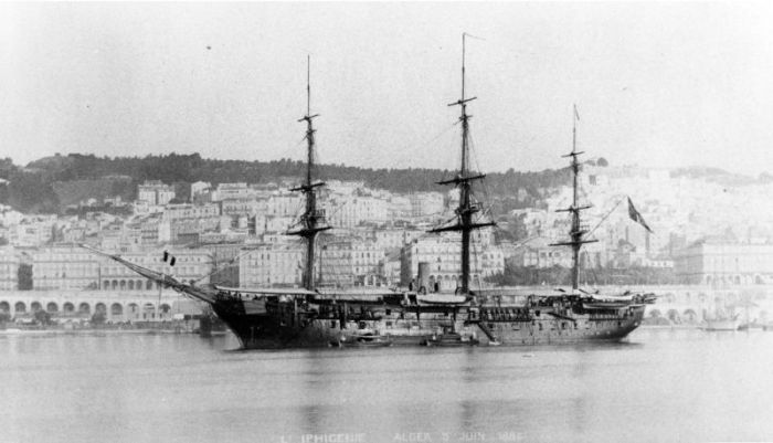 Aquest creuer escola va ser el cinquè vaixell a portar aquest nom des del 1777, en honor a la filla del rei Agammenon i a la reina Clitemnestra, batejada amb el nom d’Ifigènia de la mitologia grega. L’»Iphigénie» va ser un creuer de primera classe derivat de la classe Naïade i construït en fusta a les drassanes franceses de Brest, sent avarat el 1881 i lliurat el 1883.