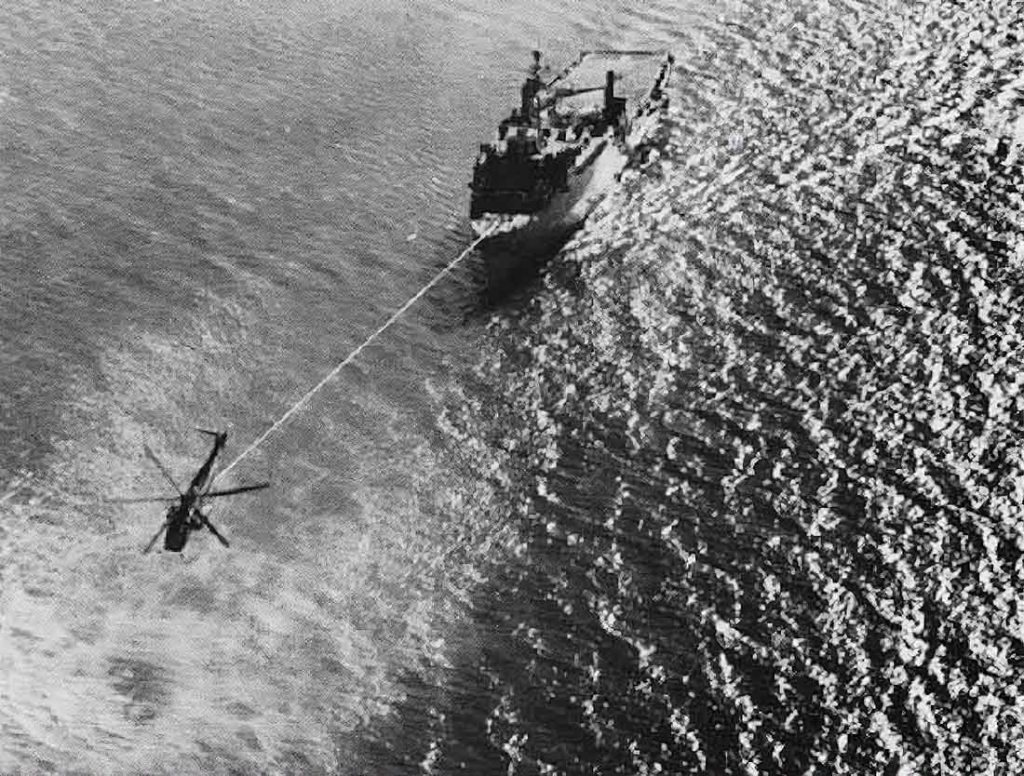 La idea de remolcar a un buque en apuros con un helicóptero no es nueva y tal vez hay que ir a buscarla en el ya lejano año de 1958, durante la operación Tug-Bird de la Guardia Costera de los Estados Unidos. Dicha operación se desarrolló en agosto de 1957 mediante un helicóptero Sikorsky HO4S cerca de la Estación Aérea de los Guardacostas en St. Petersburg. Se pretendía probar y demostrar que un helicóptero podía utilizarse para remolcar a una embarcación en apuros y el resultado fue sorprendente.