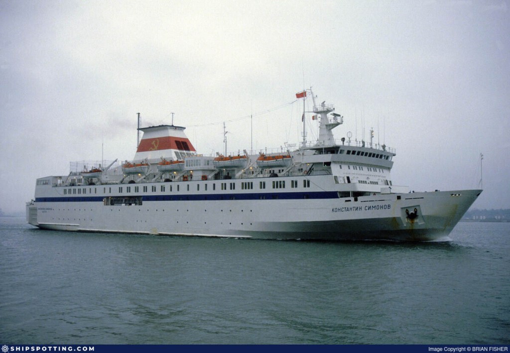 El protagonista de esta entrada, el «Konstantin Simonov», fue entregado a la Baltic Sea Shipping Company el 21 de abril de 1982 y un mes más tarde comenzó a operar en la línea Leningrado-Helsinki.