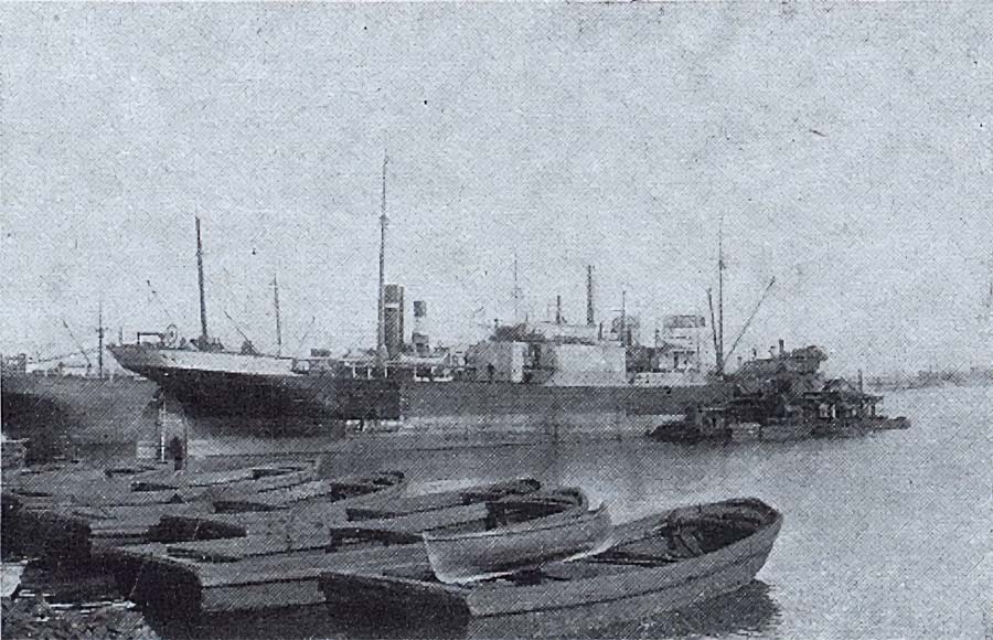 Quedó atracado en el Muelle de San Bertrán en donde permanecería una semana, tiempo que empleó para descargar 2.800 toneladas de carbón para la industria catalana. La estancia de este buque sorprendió a más de uno al no disponer de la clásica chimenea de un vapor de la época, a pesar de que en las secciones marítimas de los diarios locales comunicaron su escala calificándolo de vapor.