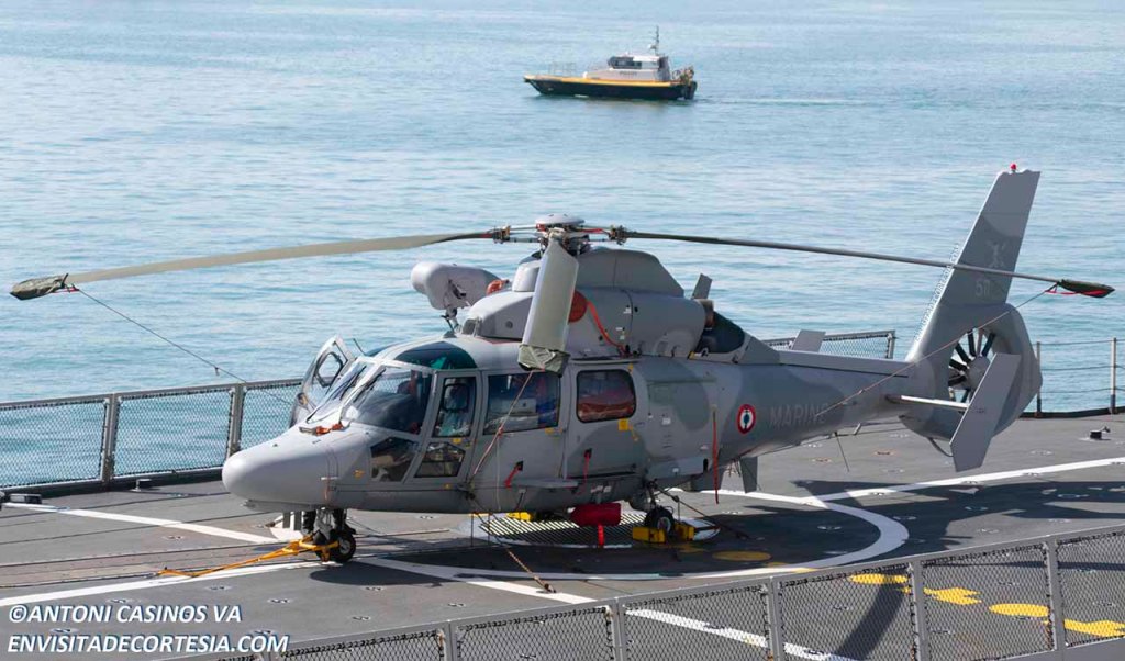 Dispone de cubierta de vuelo a popa y hangar para operar con un helicóptero de tipo medio Panther o NH-90, su cubierta de vuelo está preparada para recibir un helicóptero pesado como el Super Frelon o similar.