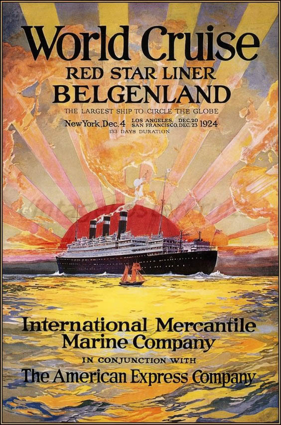 Tampoco podía faltar la línea de moda, la White Star Line, que por aquellos años aun navegaba por sus propios medios antes de fusionarse con la Cunard, y que por 54,5 libras los excursionistas, hoy conocidos como cruceristas o turistas, disfrutaban de un crucero con escalas en puertos de Italia, Grecia, Tierra Santa y Egipto.