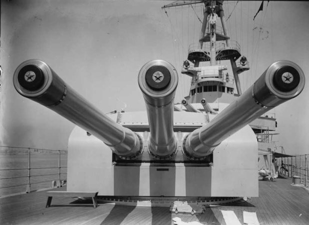 Torre artillada de proa amb els seus tres canons de 203 mm