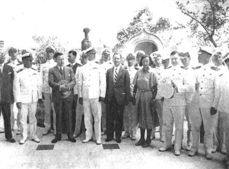 Oficials i suboficials de l’»USS Chester» durant la visita a la Diputació