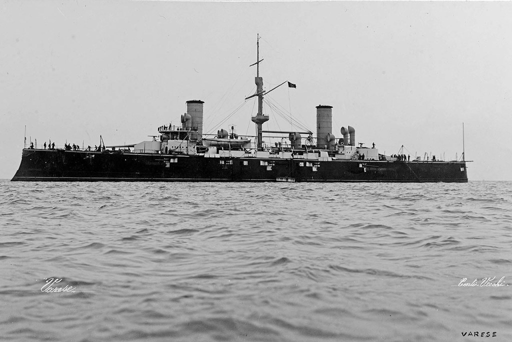 El guardacostas «Numancia» posee un historial ampliamente conocido. También destacan los acorazados pre-dreadnought franceses, como el «Iéna», cuya Santa Bárbara explotó de forma trágica, o el «Bouvet», que participó en la Primera Guerra Mundial y acabó hundido en los Dardanelos. En una entrada anterior ya me referí al «Umbría», cuyo destino quedó estrechamente ligado a Haití hasta el final de sus días. Ahora es el turno del «Varese», un crucero de la clase “Giuseppe Garibaldi”, una serie que fue un verdadero éxito comercial, con unidades vendidas a Argentina, Japón y España.