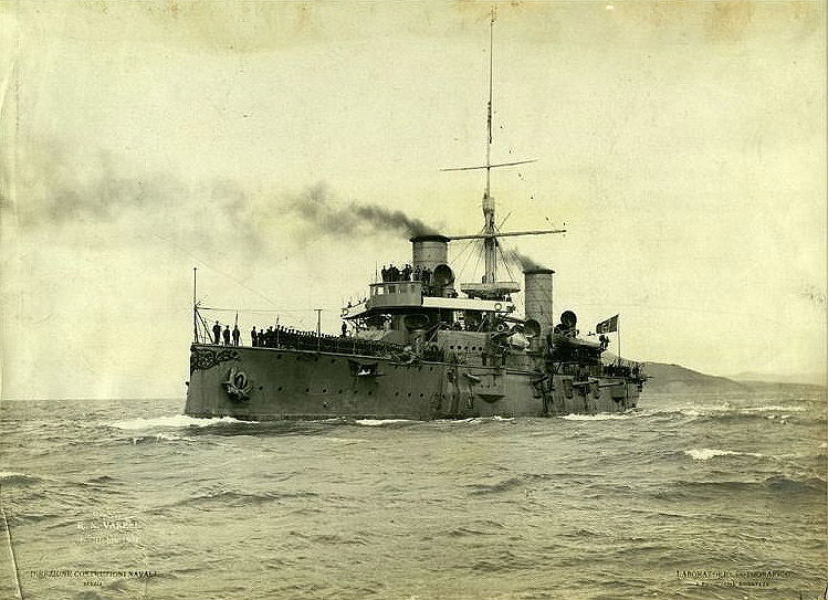 A su entrada al servicio activo participó en varias maniobras navales en el Mediterráneo durante su vida activa con el resto de la flota italiana. Pudo demostrar sus capacidades cuando tomó parte en la Guerra ítalo-turca, apoyando operaciones contra el Imperio Otomano en Libia, especialmente en el bloqueo naval y bombardeos costeros.