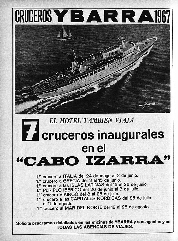 A partir de la década de 1960 la compañía Ybarra quiso diversificar sus líneas de negocio y participar en el desarrollo del turismo marítimo con rutas a Canarias y América. Este fue el objetivo del “Cabo Izarra”, concebido como un gran yate de lujo, equipado con todas las comodidades para el disfrute del turista.