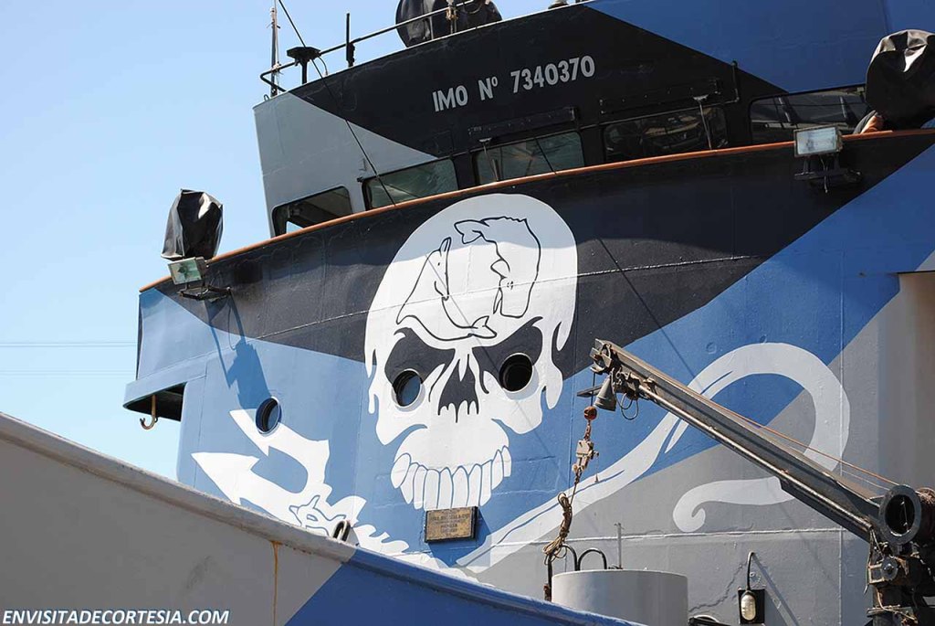 Este barco y otros de la flota de la “Sea Shepherd Conservation Society” se caracterizan por su aspecto y sus pinturas de «guerra» en donde destaca la bandera al más puro estilo de los antiguos piratas.