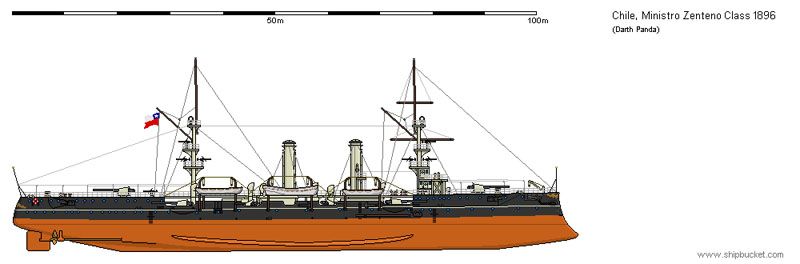 Originalment el creuer Ministro Zenteno pertanyia a un lot de tres creuers protegits encarregats per la marina de guerra del Brasil el 1894. Al primer li va ser posada la quilla el 6 de maig de 1895 però per problemes econòmics no es va poder fer efectiu el lliurament. Amb el creuer a mig construir va ser venut a Xile que en un primer moment ho va batejar amb el nom de Chacabucu però va ser avarat l’1 de gener de 1896 amb el definitiu nom de Ministro Zenteno.