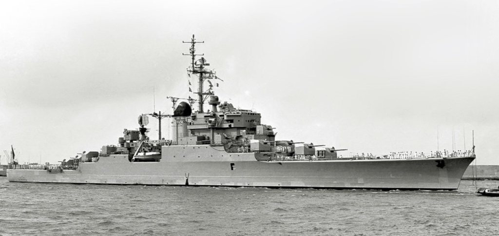 El seu armament constava de vuit muntatges dobles de canons de 127 mm (quatre a proa i quatre a popa), més deu muntatges dobles de 57 mm. A més, anava equipat amb potents sistemes electrònics com el radar DRBV-23A de descoberta aèria i de superfície, el DRBV-20C de descoberta aèria, el DRBI-10B de navegació, un DRVB-31 de navegació i descoberta de superfície, i el DRBC-31B de direcció de tir dels canons, a més de quatre DRBC-31A per als canons de 57 mm. També disposava d’equips de guerra electrònica ARBA-10B, ARBR-10B, RRBM-1, RRBM-2 i AN/SPR-1.