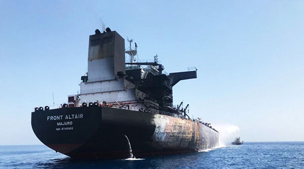 El 13 de junio de 2019, el petrolero Front Altair, mientras transitaba por aguas internacionales en el Golfo de Omán con un cargamento de nafta con destino a Taiwán, a unas decenas de millas náuticas al sureste del puerto iraní de Bandar‑e Jask, recibió lo que se calificó como un “ataque”. Según informes, se recibió una señal de socorro del Front Altair a las 03:12 GMT (06:12 hora local) tras una explosión que originó un incendio. Tras emitir la señal de alarma, su tripulación, de 23 personas, fue evacuada del buque y posteriormente entregada a un navío de rescate iraní, desembarcando finalmente en Irán. La empresa Frontline confirmó que todos los tripulantes estaban a salvo y que el buque seguía a flote (contrario a algunos informes iniciales de hundimiento) y estaba siendo asistido por remolcadores y servicios de salvamento.
