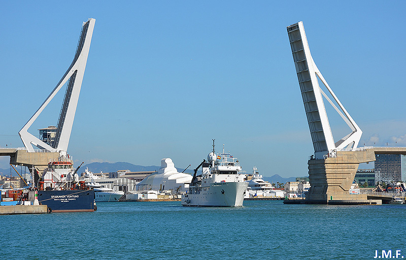 A rebre’l va sortir el pràctic de guàrdia a bord de la llanxa Sirius BCN, que amb la seva hàbil ajuda va conduir el vaixell oceanogràfic fins al Moll Oriental, situat a la dàrsena del dic flotant. Allà va romandre atracat de punta per popa fins al dia 24, quan es traslladaria de moll, des de l’Oriental fins al Moll de Lepant.