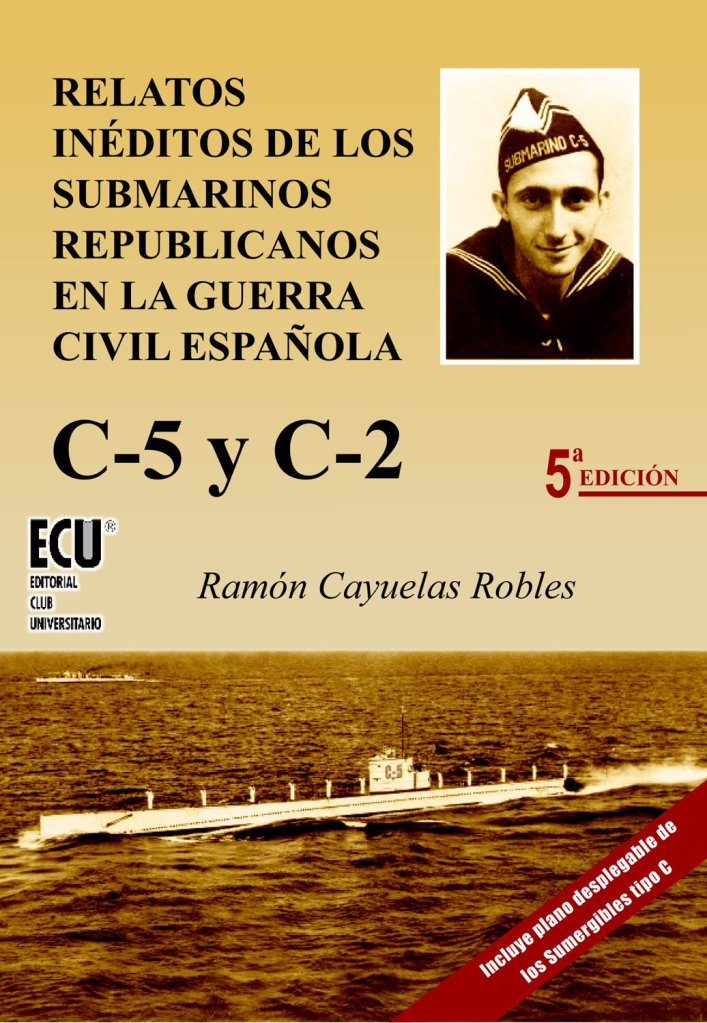 Relatos inéditos de los submarinos republicanos en la guerra civil española: C-5 y C-2, de Ramón Cayuelas Robles, es una colección de testimonios en primera persona y relatos documentados sobre la vida a bordo y las misiones de dos submarinos republicanos durante la guerra civil. El autor, que vivió experiencias a bordo del C-5 y del C-2, reúne episodios de combate, accidentes y la rutina diaria de una tripulación sometida a tensión constante, presentándolos con un estilo testimonial y descriptivo que busca trasladar al lector a la estrechez y el ruido del interior de un submarino.