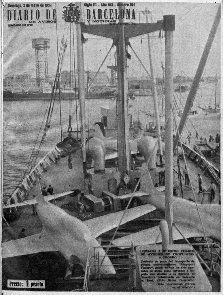 A las dos y media de la tarde el 1 de mayo de 1954 el buque de transporte USNS Kingsport Victory (T-AK-239) realizaba una escala en el puerto de Barcelona. Quedó atracado en el Muelle de España, en donde lo estaban esperando las autoridades civiles y militares de la ciudad que estaban pendientes de recibir una carga especial para el Ejército del Aire.