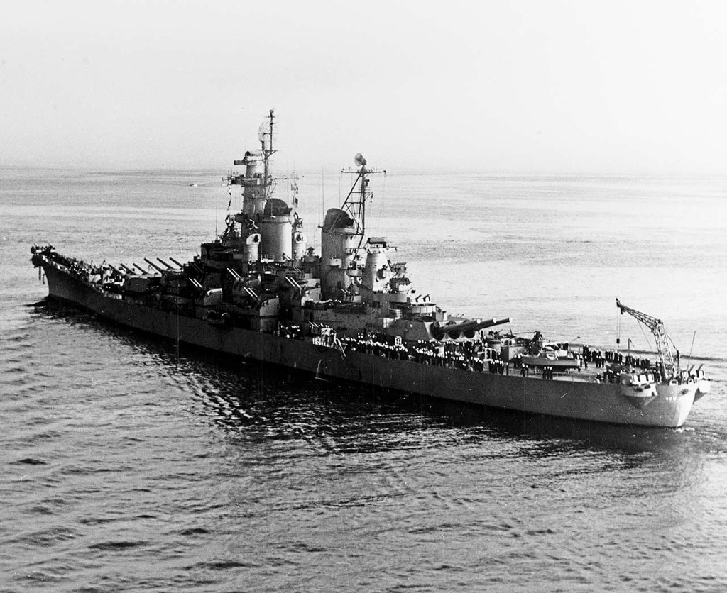 A su entrada en servicio activo, sirvió en el Teatro del Pacífico durante la Segunda Guerra Mundial, entrando en combate en enero de 1944 como buque insignia del almirante Raymond A. Spruance. Participó en campañas como las de las islas Gilbert, Marshall, Marianas y Filipinas, destacando en misiones de bombardeo costero y escolta de portaaviones aliados contra Japón.