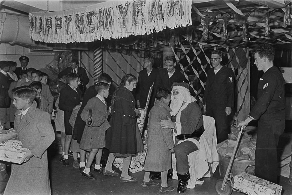De este modo, el USS New Jersey se unía al selecto club de buques de guerra estadounidenses que celebraban la Navidad ayudando a los más jóvenes. En este blog ya vimos el caso del buque carbonero USS Jason, que llevó regalos desde Estados Unidos a una Europa en guerra y realizó una breve escala en Barcelona.