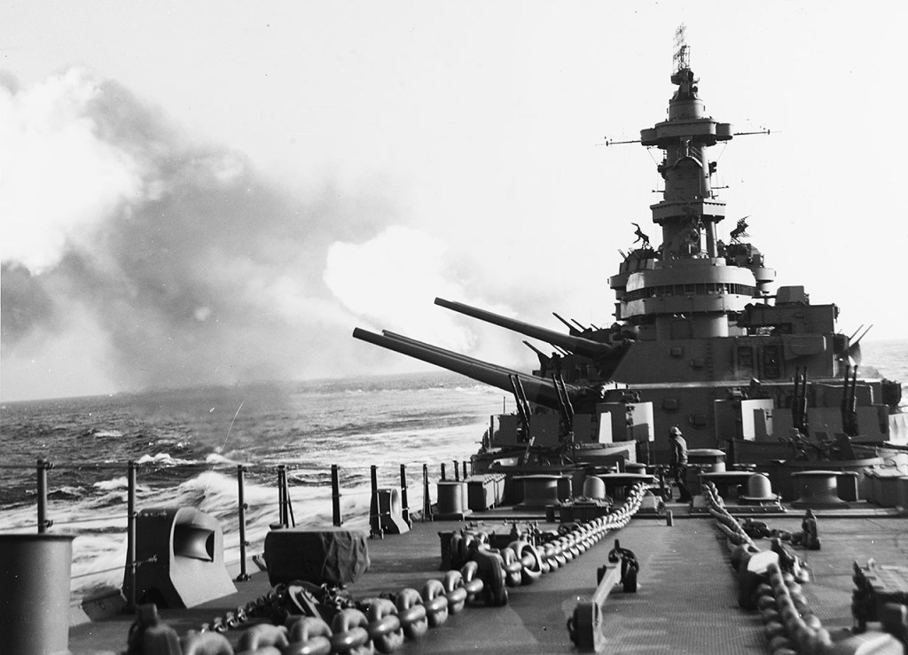 Estaba armado con 9 cañones de 406 mm Mk 7, distribuidos en tres torres triples, dos a proa y una a popa; 20 cañones de 127 mm Mk 12 montados en diez montajes dobles, cinco por banda; 80 piezas antiaéreas de 40 mm y 49 de 20 mm. Además, podía operar hasta 3 hidroaviones Vought OS2U Kingfisher, lanzados mediante dos catapultas y recuperados con una grúa de a bordo.
