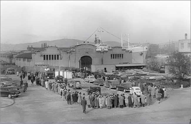 El matí del 22 de desembre de 1956, mentre alguns veien passar de llarg el «gordo» de la loteria, d’altres van baixar al port per rebre la motonau Ciudad de Toledo, anava al comandament del capità Francisco Lleal Bacas, i al port de Barcelona posava punt final al seu creuer per Amèrica com a Exposició Flotant.