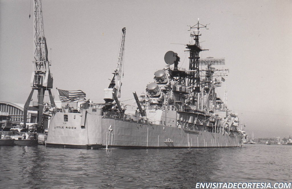 Imponente aspecto del crucero lanzamisiles USS Little Rock (CLG-4), visto desde su aleta de estribor, que un día como hoy de 1971 llegaba a Barcelona junto al grupo de combate del portaaviones USS John F. Kennedy (CVA-67).