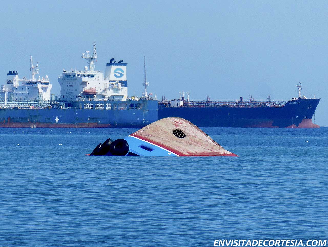Por causas aún desconocidas y bajo investigación, el remolcador Cala Gullo volcó sobre su costado de babor y quedó atrapado bajo la popa de un portacontenedores. Afortunadamente, no hubo víctimas y la tripulación pudo evacuar la embarcación por la puerta de estribor del puente de mando.