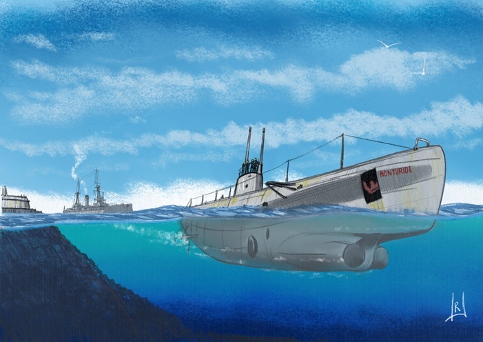 El 24 de enero de 1919 tuvo lugar la ceremonia de entrega de la bandera de combate al submarino Monturiol, de la Armada Española. En los muelles, además de los invitados, estuvo acompañado por el torpedero nº 18, los submarinos Isaac Peral, Cosme García (A-2) y A-3, así como por el acorazado Alfonso XIII.