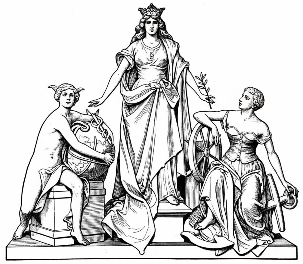 L’edifici consta de dues plantes i està inspirat en l’arquitectura Beaux-Arts francesa, amb torres a les quatre cantonades. La façana està coronada pel conjunt escultòric Barcelona protegeix la Marina i el Comerç, realitzat el 1907 per Joan Serra Pau, que representa la ciutat com una reina flanquejada per les al·legories del Comerç, encarnat per Mercuri, i de la Marina, simbolitzada per una jove amb timó i àncora, acompanyades de lleons alats i una rica decoració de temàtica marítima.