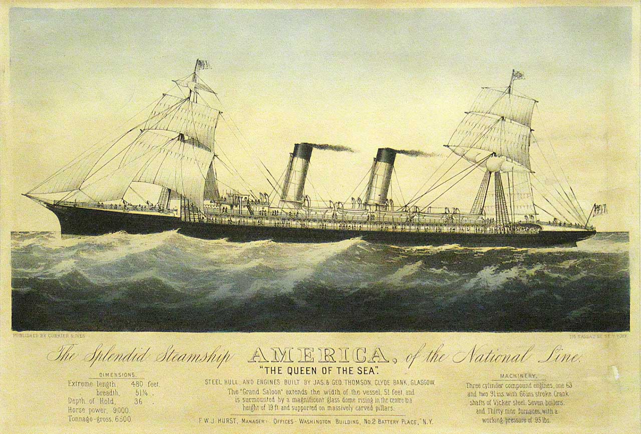 La naviliera National Line aviat intentà batre el rècord de velocitat transatlàntica amb l’America, aconseguint una marca entre Liverpool i Nova York de 6 dies i 11 hores, però per una sola hora no s’endugueren el Gallardet Blau. El títol se’l quedà el vapor Oregon de la Liverpool and Great Western Steamship Company (també coneguda com a Guion Line) amb un temps de 6 dies i 10 hores.