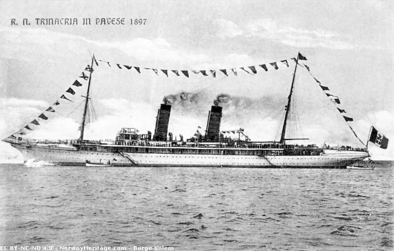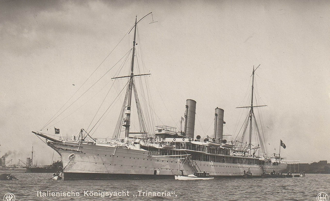 La vida marinera del Trinacria va ser una raresa. Fou construït com a transatlàntic i després utilitzat com a creuer auxiliar per la Royal Navy; més tard seria venut a la Regia Marina, que l’utilitzà com a iot reial, i a Barcelona el veiérem amb el seu mostrari de productes italians com a Fira Flotant; però possiblement la seva carrera hauria estat una altra si l’any 1884 hagués guanyat el prestigiós Gallardet Blau.