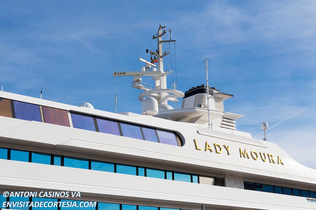 Larga fue la estancia en el puerto de Barcelona del yate Lady Moura, llegado el 5 de septiembre de 2023. Quedó atracado en el Muelle Oriental, en la Dársena del Dique Flotante, y ahí esperó turno para ser trasladado a la grada de MB92 para ser sometido a obras de mantenimiento.
