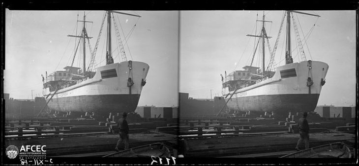 Imagen en estéreo del Mirotres sobre la grada del dique seco flotante del Barcelona