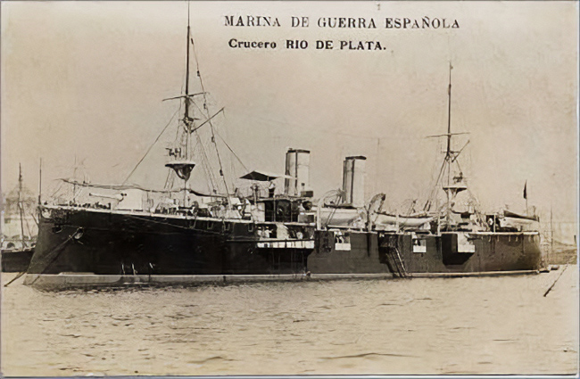 El crucero Río de la Plata fue construido en los astilleros franceses de Forges et Chantier de la Mediterranée en 1896; desplazaba unas 1.800 toneladas y tenía 76 metros de eslora, propulsado por dos máquinas a vapor de triple expansión de 6.000 CV, que le daban unos 20 nudos. Iba armado con 2 cañones de 140 mm, 4 de 105 mm, 6 de 57 mm y 4 ametralladoras de 37 mm.