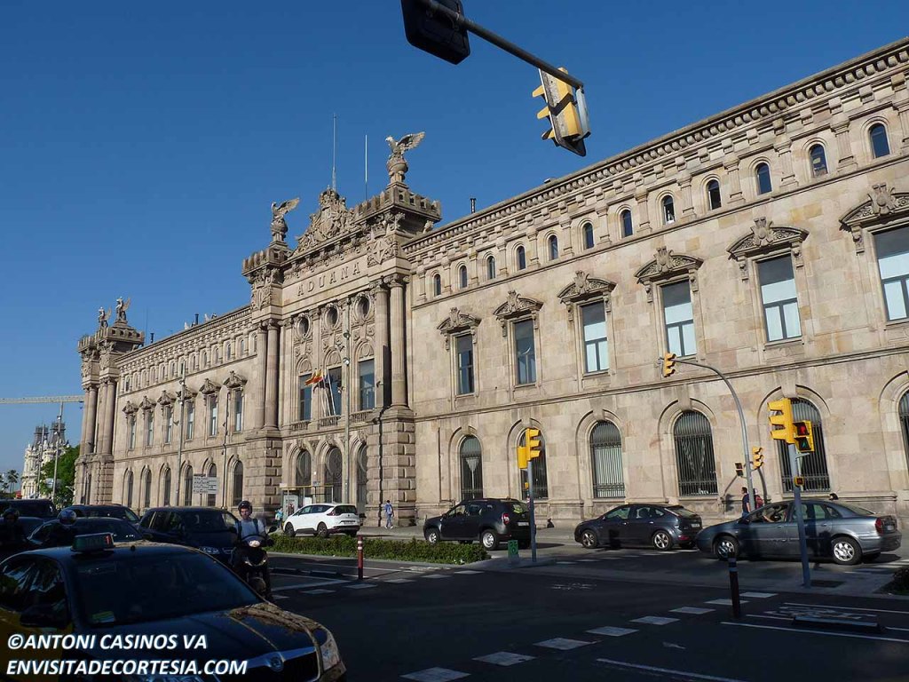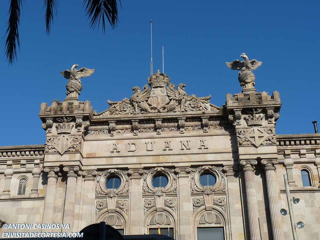 L’edifici de la nova duana, construït entre 1896 i 1902 a la Avenida de Colón, va ser obra dels arquitectes Enric Sagnier i Villavecchia i Pere Garcia Fària. D’estil eclèctic, típic de finals del XIX, destaca per la seva curiosa planta en forma de H. La disposició dels espais tenia un propòsit molt pràctic: les mercaderies entraven per un extrem del costat marítim, passaven pels salons de reconeixement i sortien per l’extrem oposat, mentre que la façana més monumental es reservava per a les oficines administratives.