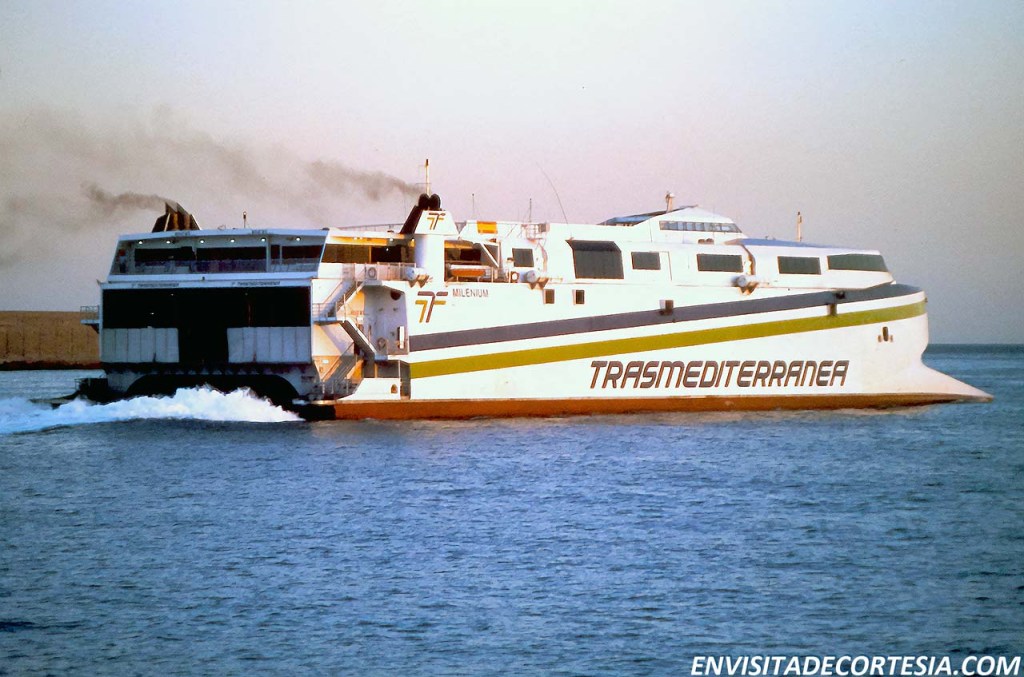 El 9 de junio de 2000 partía felizmente el fast ferry Milenium de la Compañía Trasmediterránea, dando así comienzo sus servicios en la línea Barcelona–Palma. El ferry catamarán había sido presentado unos días antes, el 5 de junio, con la presencia del alcalde de la ciudad, Joan Clos. Esta fue la respuesta de Trasmediterránea tras la inauguración de la misma línea por parte de Buquebús con el buque Catalonia.