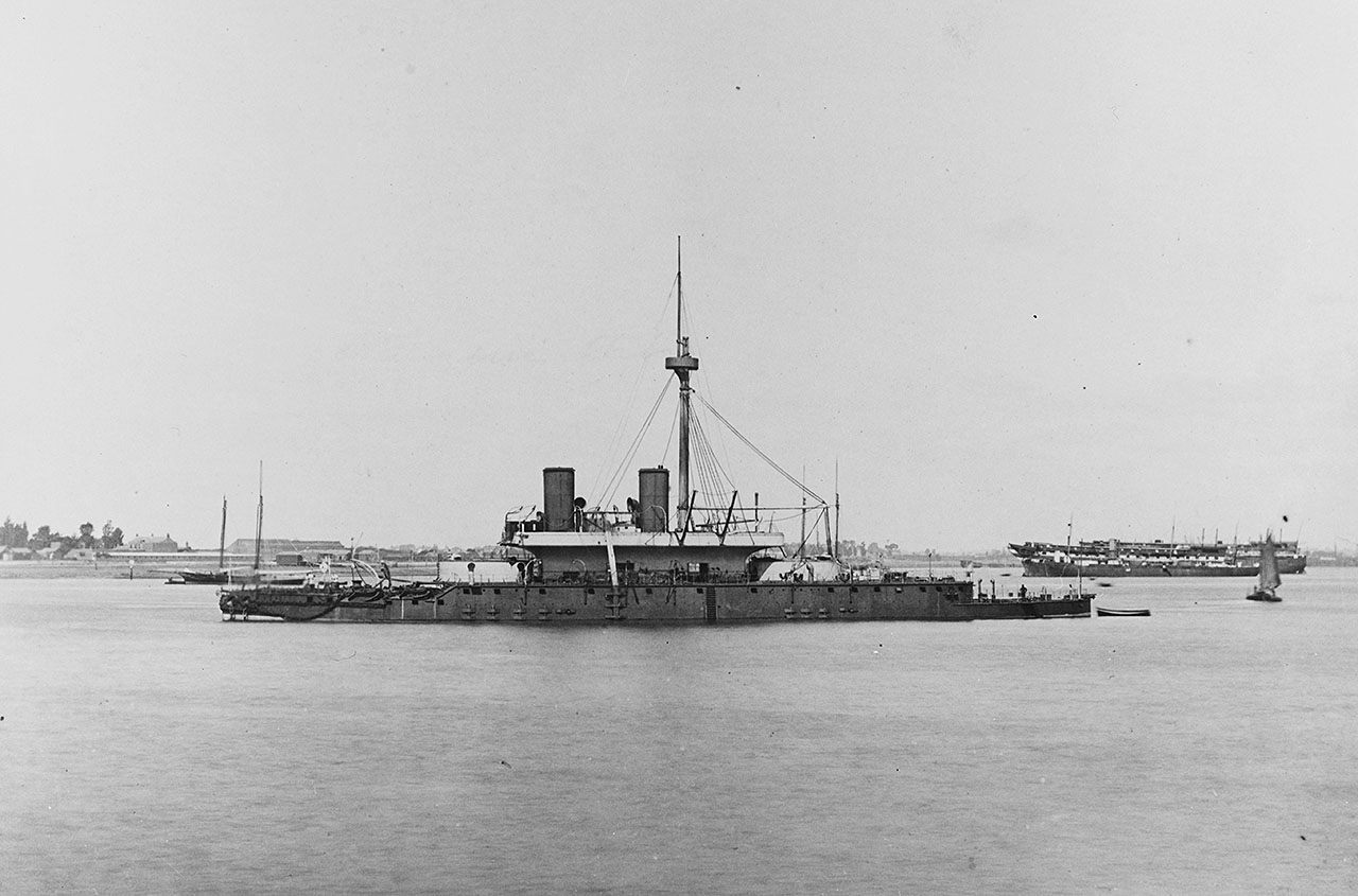 El 17 de maig de 1888 navegava en demanda del port de Barcelona l’Esquadra de la Mediterrània de la Royal Navy, dividida en dues divisions i composta per onze vaixells de guerra. A causa del seu nombre i dimensions, la majoria hagueren de fondejar davant la rada del port, excepte un avís que pogué entrar. L’Almirallat britànic havia desplaçat les esquadres de la Mediterrània i d’Instrucció perquè prenguessin part en la revista naval organitzada com a preludi a la inauguració de l’Exposició Universal de Barcelona.